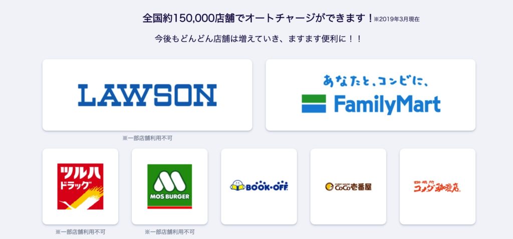 オートチャージ対応の店舗は一応約150,000店舗以上あるので困ることはないですが、加盟店でも一部対応していない店舗もあるので注意が必要です。