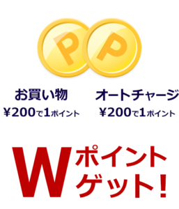 チャージした楽天Edyをお店で利用すると200円ごとに1ポイントがもらえるので、合計で200円ごとに2ポイントがもらえるというメリットがあります。還元率としては1.0%ですね。