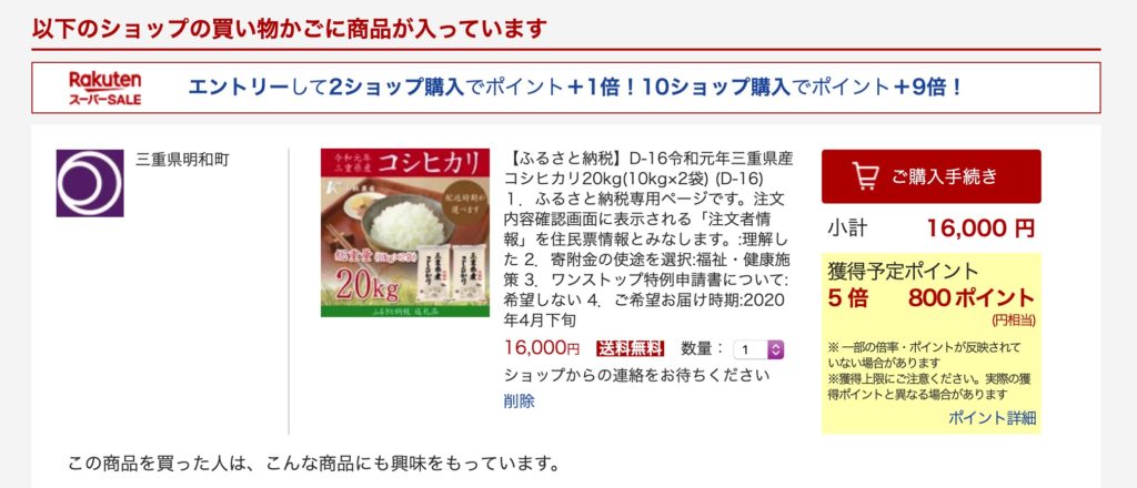 ここまでの内容で楽天ふるさと納税を利用した寄付は完了しています。