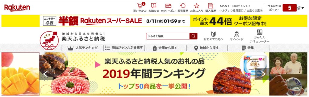 楽天市場でお買い物をする感覚でふるさと納税をおこなうことができ、楽天市場のキャンペーン中は楽天ふるさと納税でもポイント倍率が爆発的にアップします。