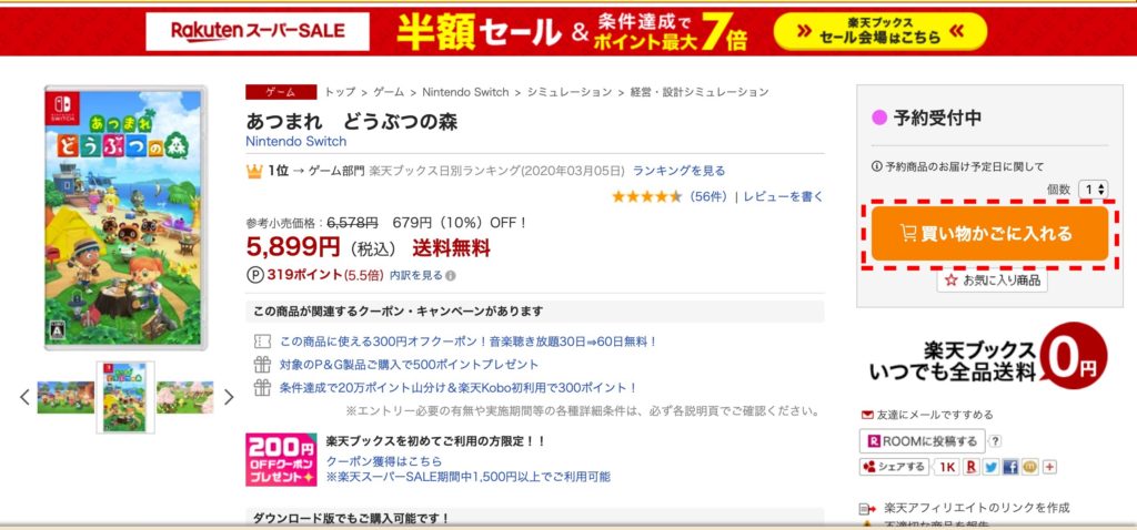 step1.商品を選択し「買い物かごに入れる」をクリックする