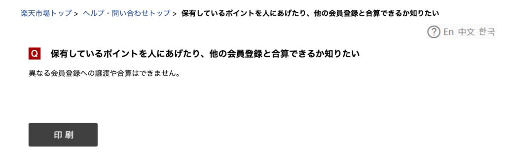 楽天ポイントは別会員の友人にあげることが禁止されています