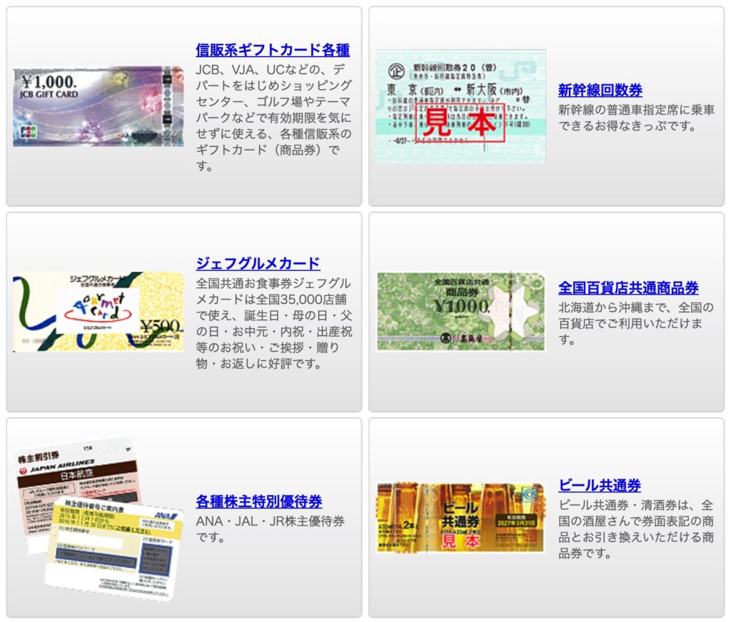 ただし1,000円の商品券に対して1,100円+送料などと1ポイント1円以下になってしまうことがあります。