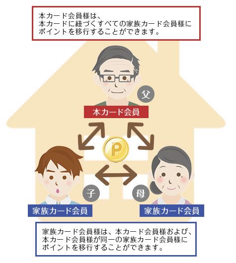 =本カード会員、家族カード会員間でポイント”移行”が可能