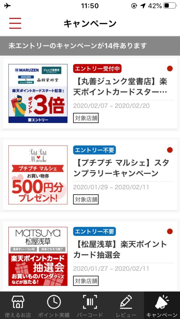 楽天ポイントカード会員が利用できるキャンペーンが一挙にまとめられているのもかなり嬉しい点です!