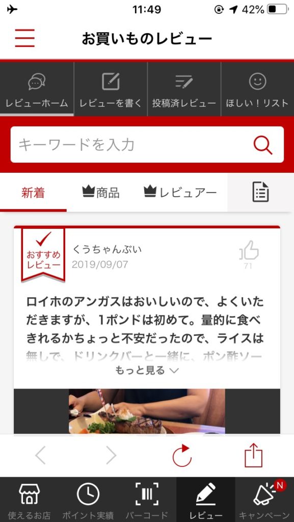 アプリ上では自分が購入した商品のレビューを投稿することができます。