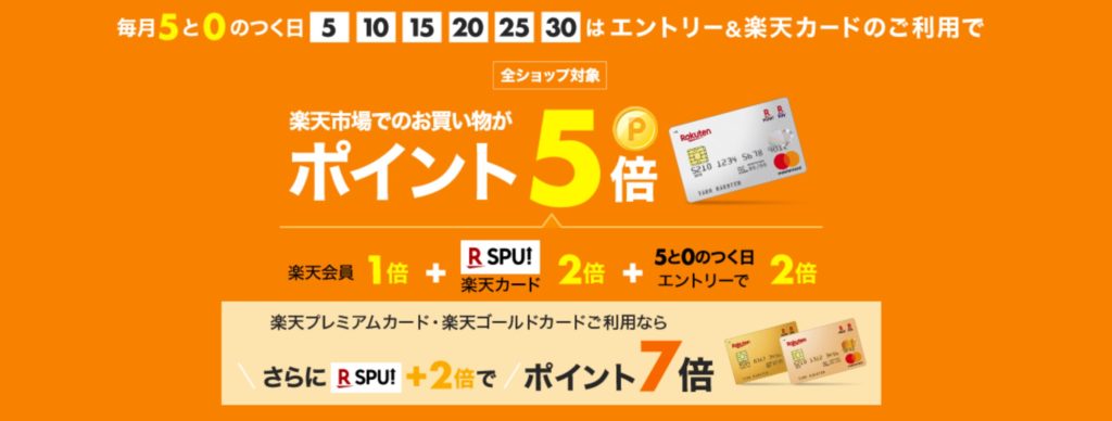 5と0のつく日は楽天カード会員限定なので、必然的にSPU特典と併用することになります。