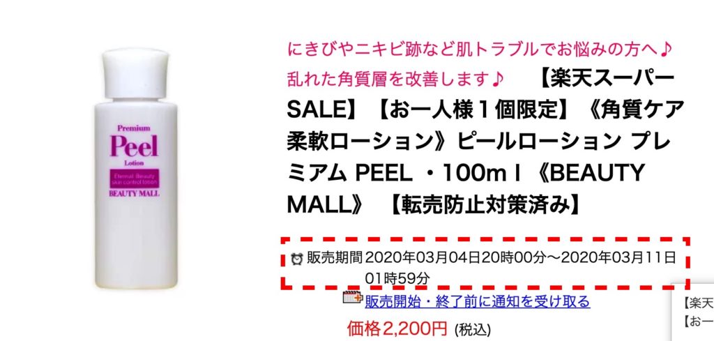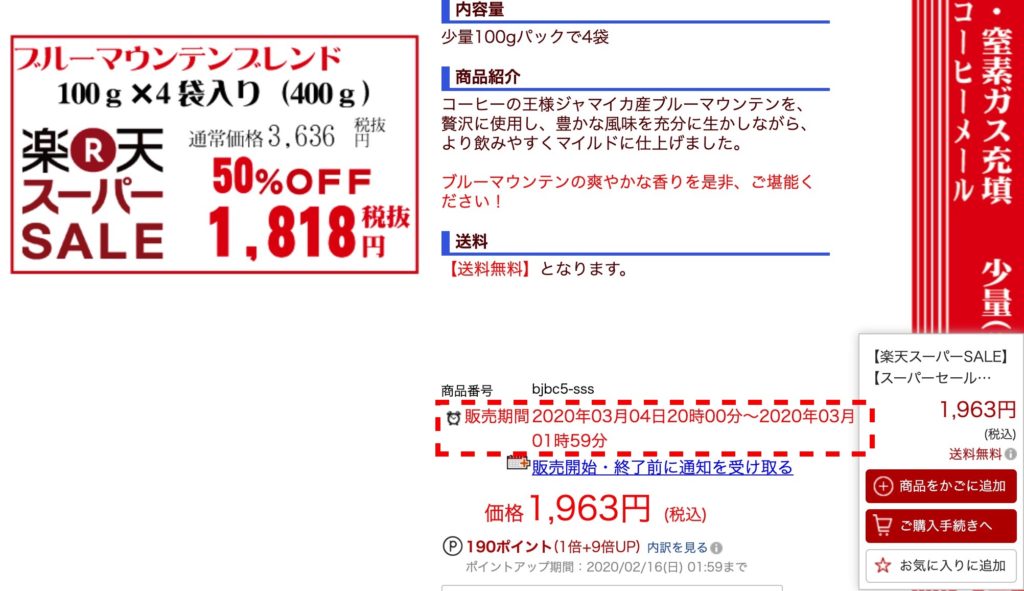 つまり、「この商品は楽天スーパーセールが開催される3月4日〜3月11日で販売します!」と宣言しているようなものです。