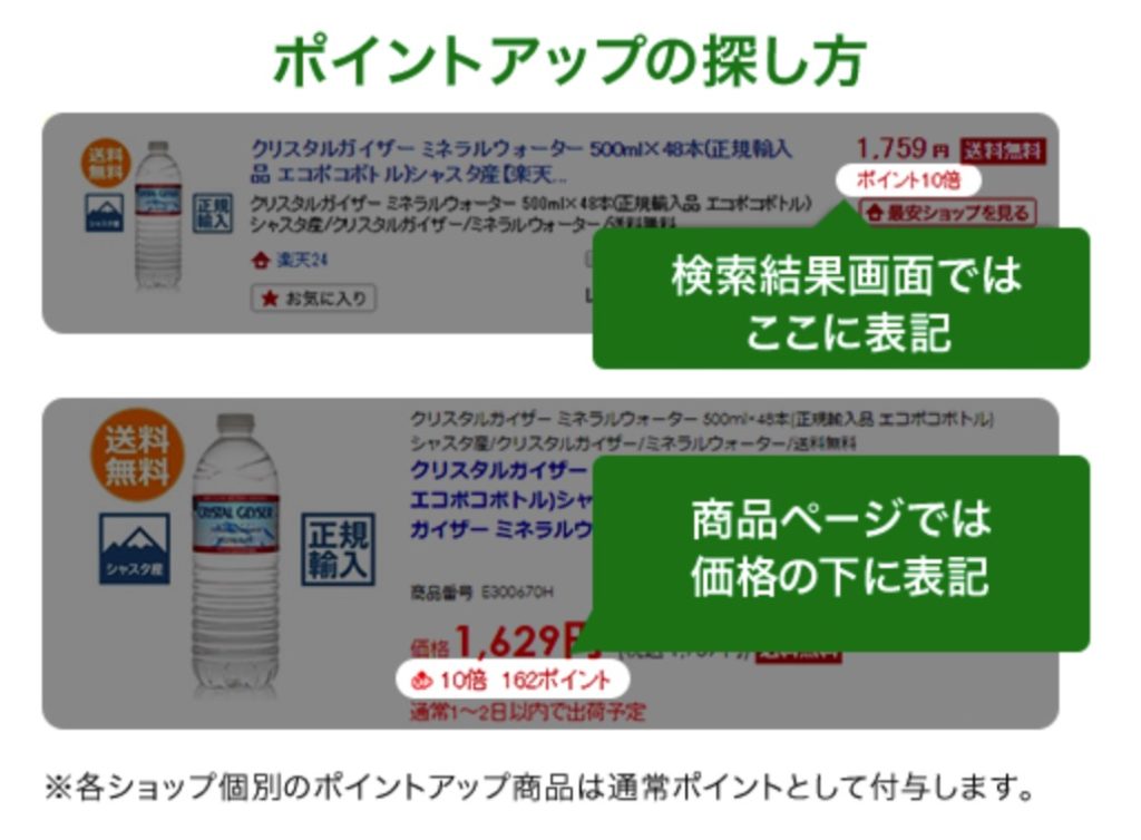 商品検索の画面で商品価格の下にポイントアップの倍率が表示されています。