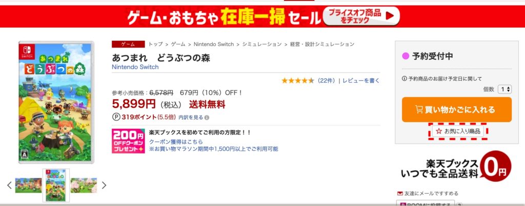 欲しい商品はあらかじめお気に入り登録しておいて、楽天スーパーセールの時に購入しましょう。