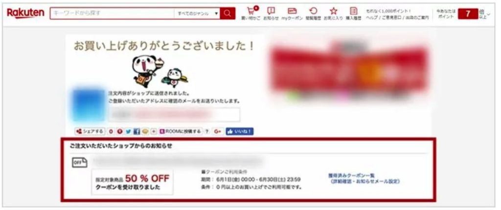 各ショップでお買い物をした後、購入したショップからクーポンのプレゼントがある場合もあります。
