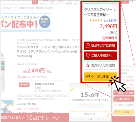 その場合はボタンをクリックすればそのままクーポン獲得画面が表示され、所定の割引が適用されます。